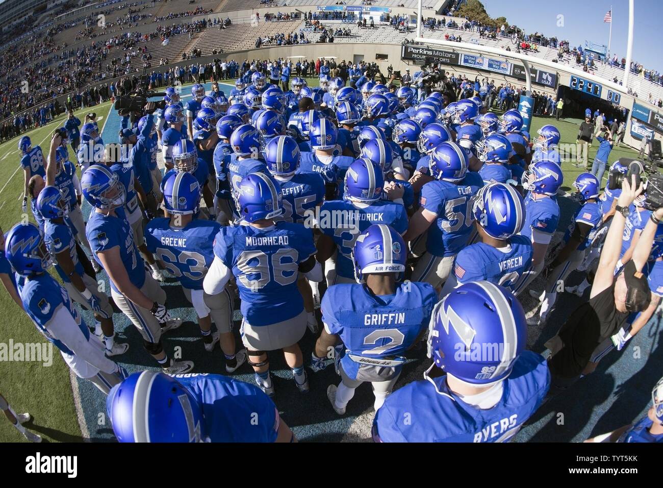 The Air Force Falcons Huddle Before Taking On The Boise State