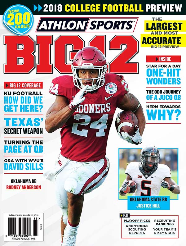 Athlon sports 2018 big 12 college football annual provides in depth team by team previews along with our preseason top 25 all america teams big 12 championship game pick all big 12 teams and everything else you need to know about the upcoming season of big 12 football.