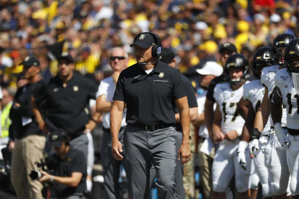 Army Black Knights Head Coach Jeff Monken Watches His Offense From